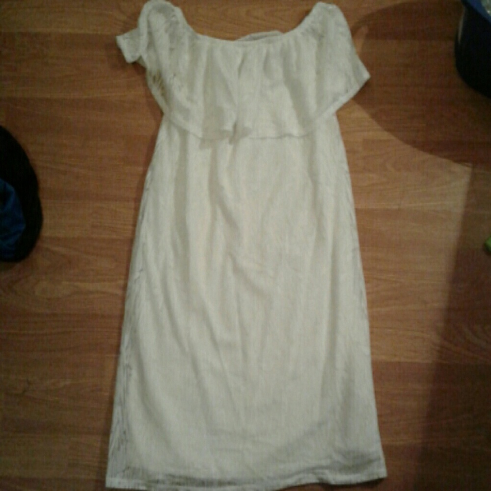 Worn once. Excellent condition. Can be wore with the sleeves on shoulders or hanging off like a halter top. Comes right above my knee in length