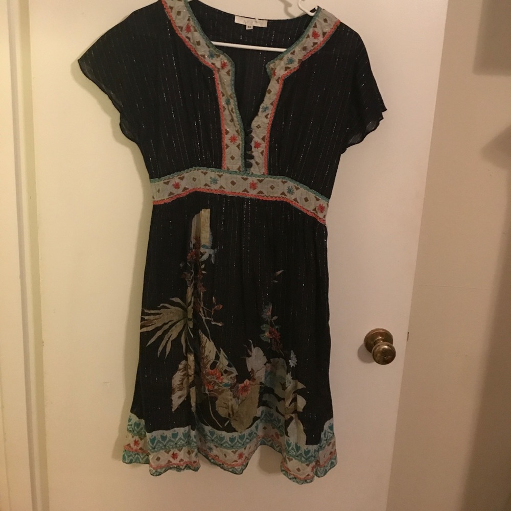 Decorative cotton dress with fine gold threading sewn into fabric.