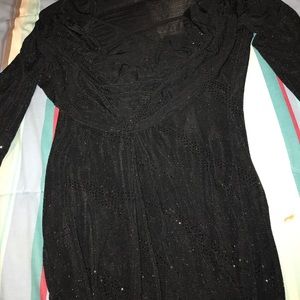 It's black it's really sparkly it's so cute for going out or for your birthday I only wore it once and that was to homecoming it's super comfortable
