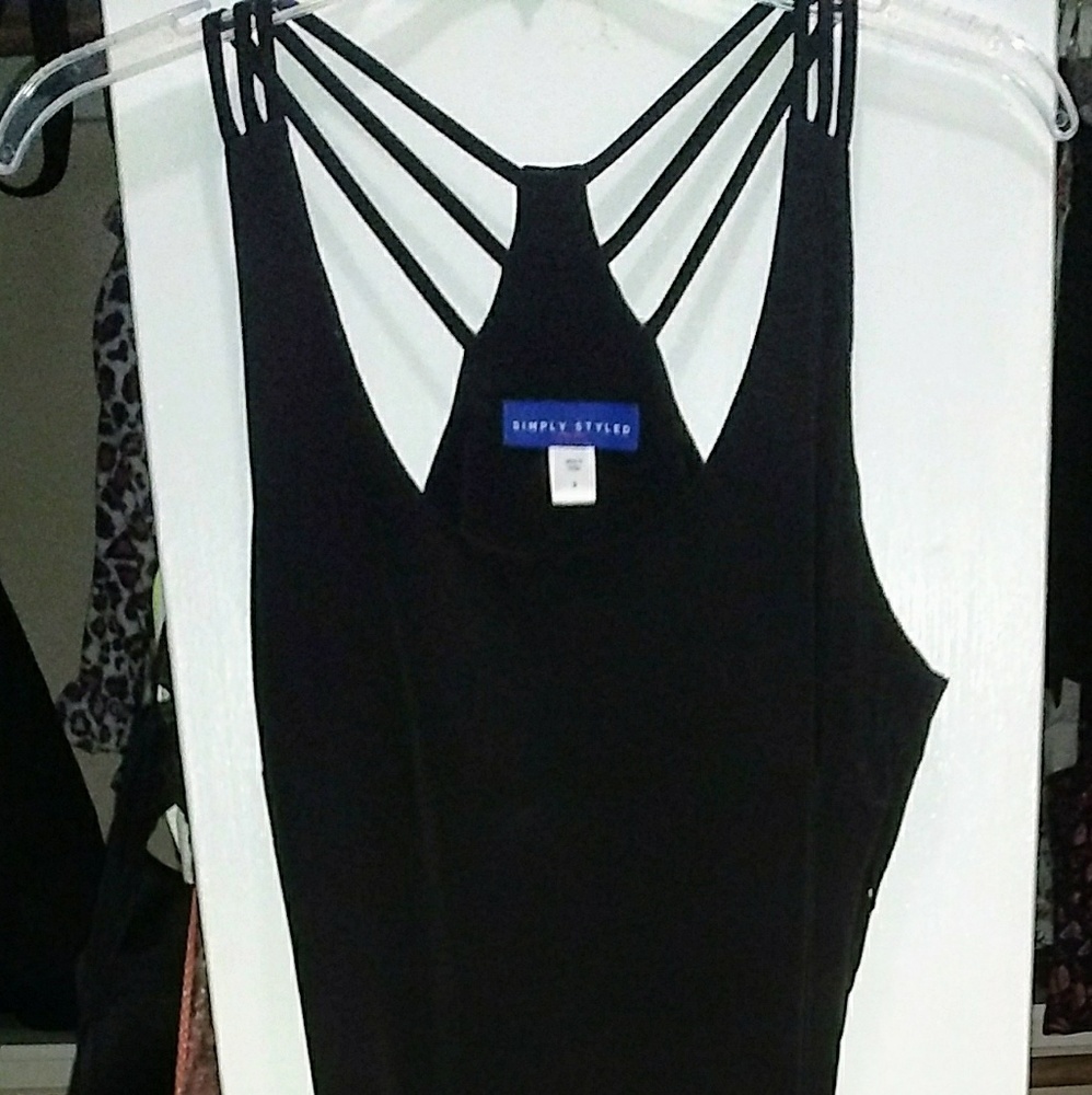 Black dress with beautiful straps on the shoulders and back. Reaches the ankle and has slits on both sides.