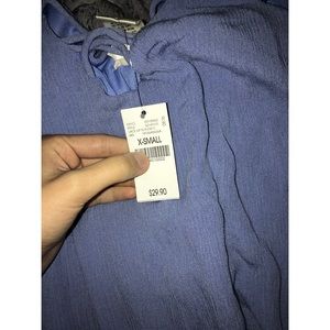 WITH TAGS. NEVER WORN. Back is similar to front. Back is in the second picture. Blueish dress great for spring or summer. Great condition!