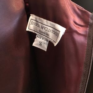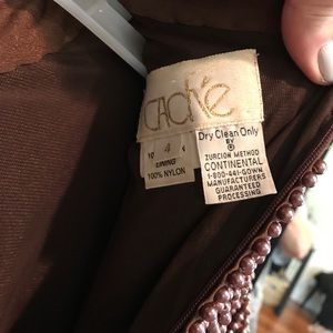 Formal long Jessica McClintock brown satin dress in size 7/8 with Cache crop top fully beaded size 4. Like new.