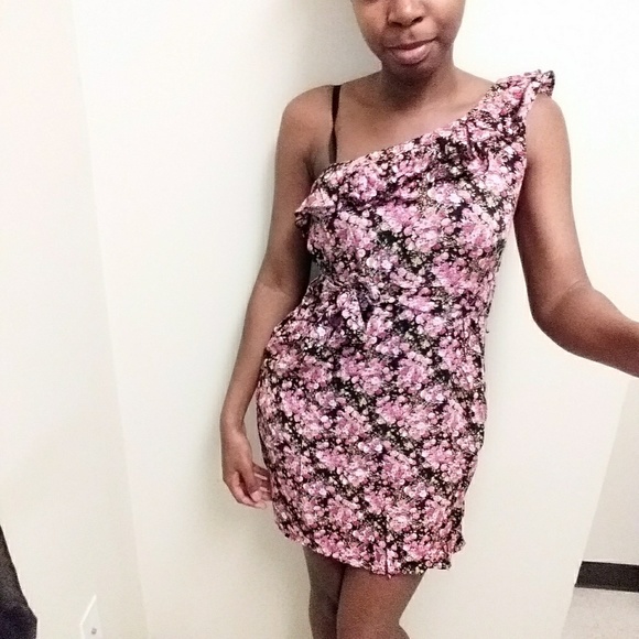 Flower dress with off the shoulder side
