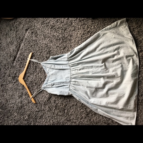 Blue old navy cotton summer dress, translates to fall really easily, with tights and boots