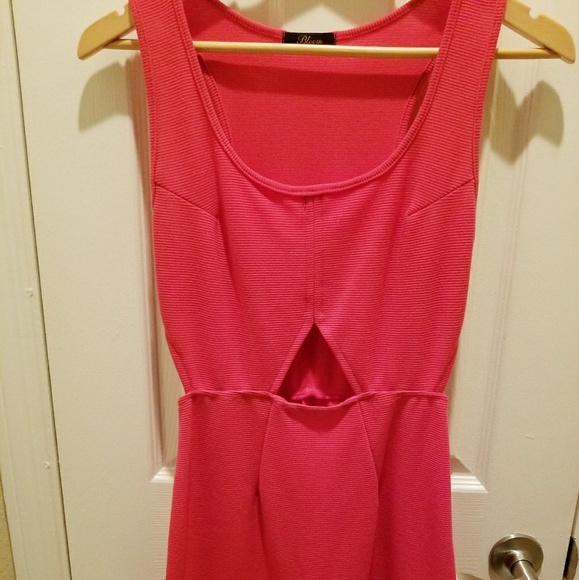 Great party dress for the summer or even a hot Miami night! It has 3 key holes, 1 in front and 2 on the sides. Sleeveless and a mini on length.