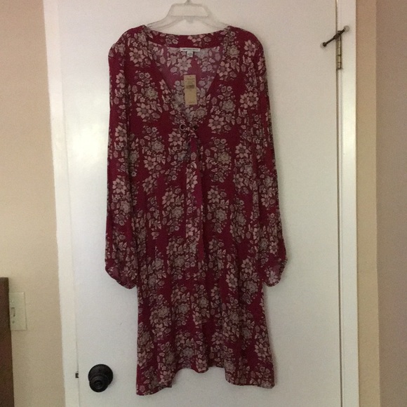 Long-sleeved high-waisted v-neck front tie peekaboo under tie rayon never worn
