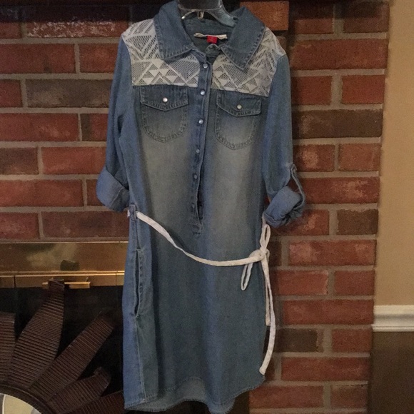 Jean 6 button down dress with white tie around the waste