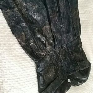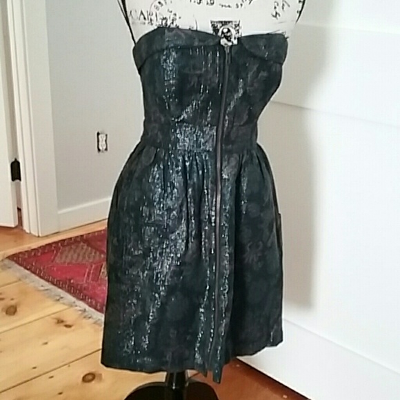 Anthropology staring at stars size 6 strapless dress...so cool and different! Like new, zip up the front, pockets, im 5"5 and it goes to my knees. Its kind of a stretchy denim with with a muted floral pattern and some shiny thread throughout. Smoke and animal free home.