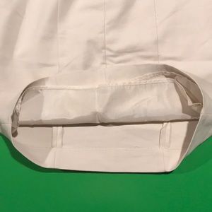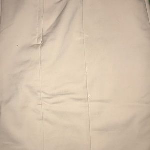 Beige, 50%cotton/50%polyester+elastane, work/family function appropriate, semi stretch, no stains, few threads coming undone on back lower part, 89 cm long, 38 cm at waist