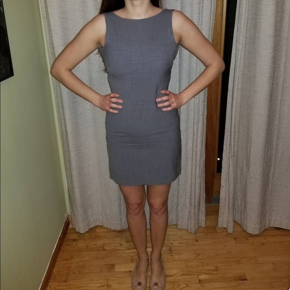 Gray dress with zipper in back, work appropriate, too short on me(I’m 5’11’)
