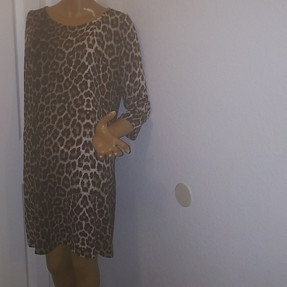Long sleeve animal print brown tan and dark brown colors short dress