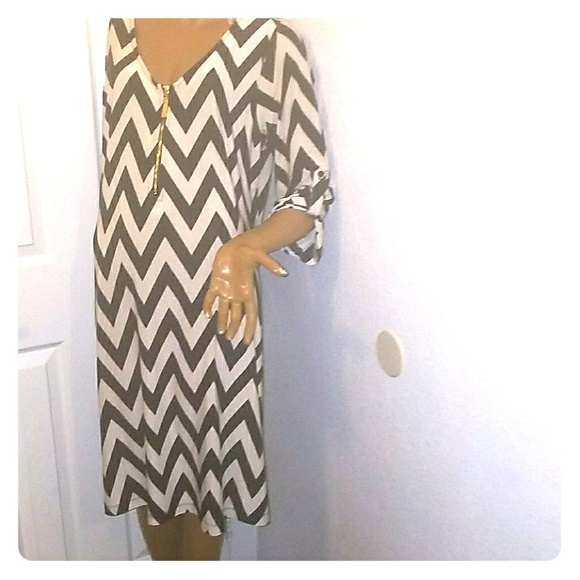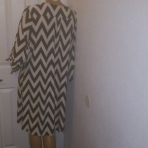 A tan dress with black zig zag print