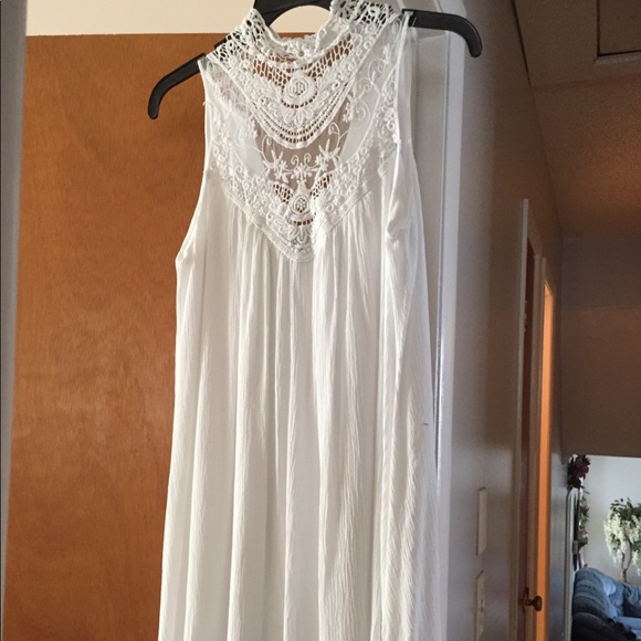 White A-line swing dress with keyhole back, size M, excellent condition