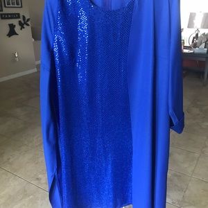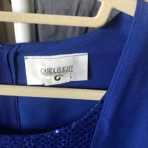 Blue party dress. My mother used it one time on my wedding date. Dress is dry clean. Ready to use.