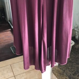 Burgundy satin dress, spaghetti straps, slightly longer in back for that elegant effect. Worn once, good for any special occasion.. see closeup of spot right below rhinestone, slight ,imperfection.