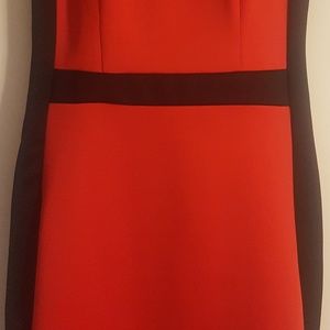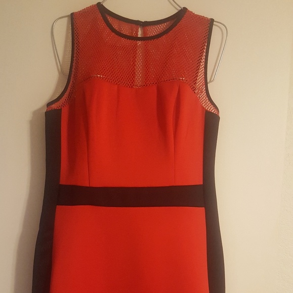 Red & Black dress the accentuates your curves, mesh around chest and top back area, hidden zipper and a small button to close up the back. It is new, never been worn before. 92% polyester, 8% spandex,
