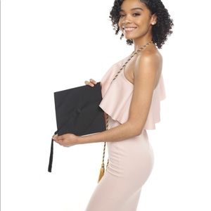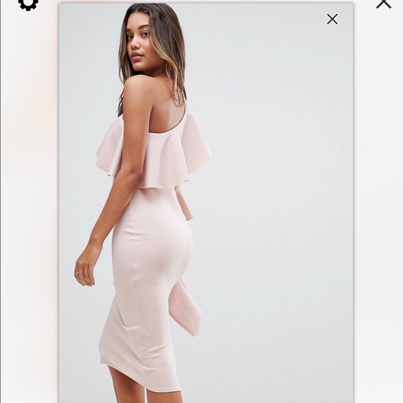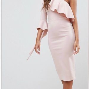 Blush millennial pink half shoulder bodycon dress. WORN only for grad photos, brand new. Perfect color and Deff a statement dress.