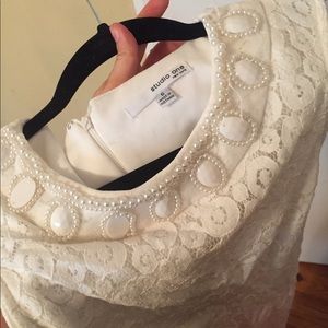 Beaded white lace dress in good condition. A few fly away threads at neckline otherwise like new condition