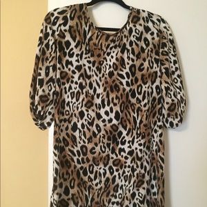 Cheetah print dress with red/garnet ribbon on back