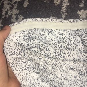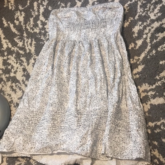 White and gray splattered strapless dress