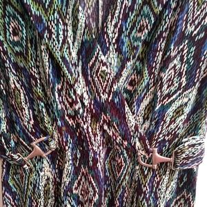 New without tags. Never use. Printed jersey dress. Very comfy. Knee length. faux wrap. Faux belt.