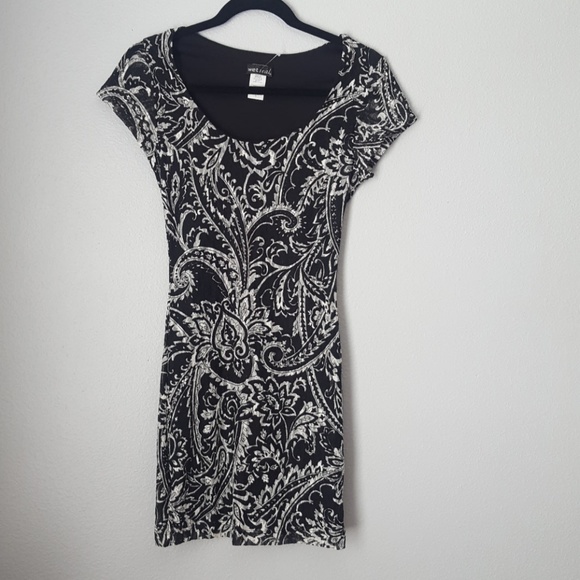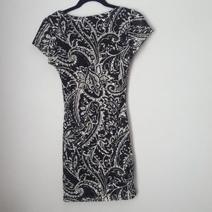 A black & white paisley print dress. Made of lace with a black slip underneath. You can dress it up for any occasion or dress it down for a casual day. This dress has never been worn.
