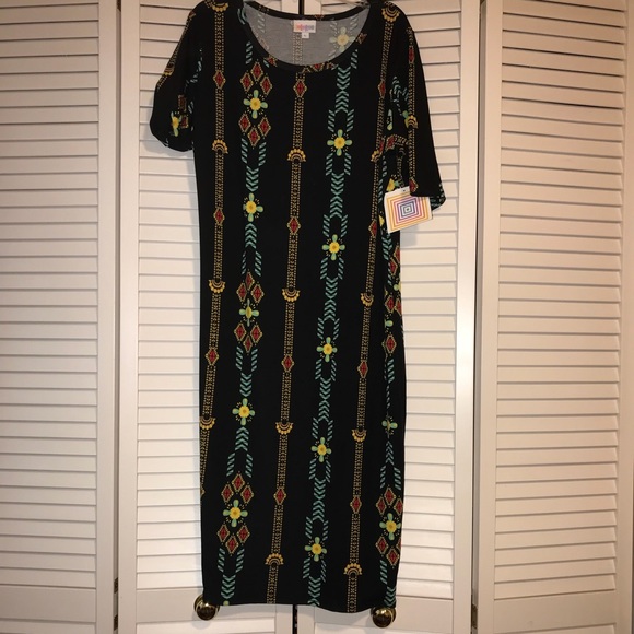 Beautiful LulaRoe Julia NWT. Lovely colorful vertical design with black background