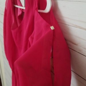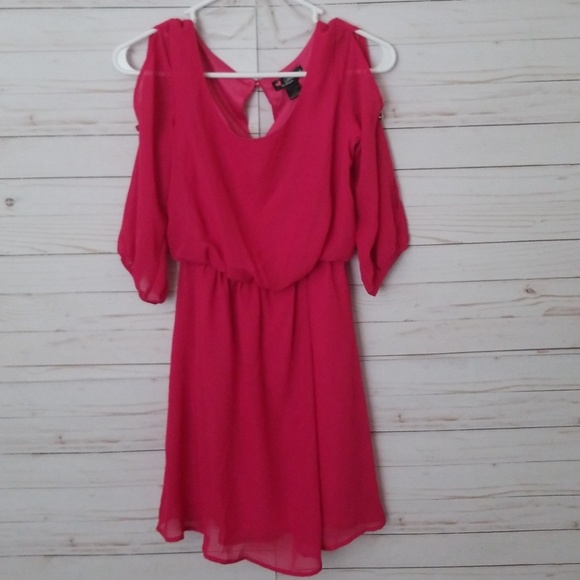 Pink dress, cinched waist, open cuts on sleeves, back keyhole