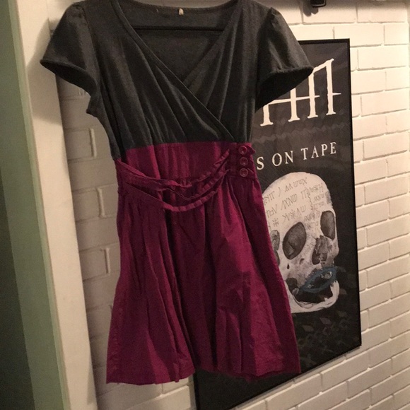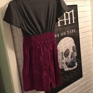 This dress is so flattering and so comfortable! Fish is with dark grey. The dark grey top is T-shirt material.
