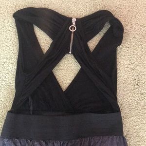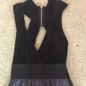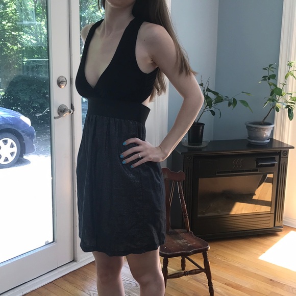 V cut front,exposed back with exposed back zipper, elastic waist band, sparkly skirt super sexy going out dress