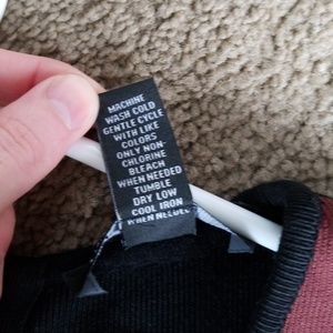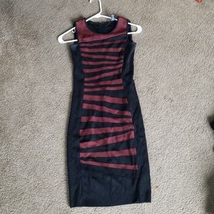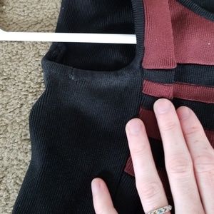 Maroon and black stripe xs office or conservative night out. Super comfortable. Small amount of whiteness in armpits and the clasp on the top where the zipper is broke. But doesn't fall when worn. I just never wear it anymore