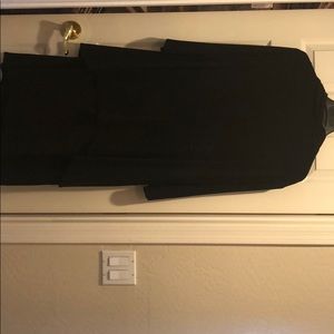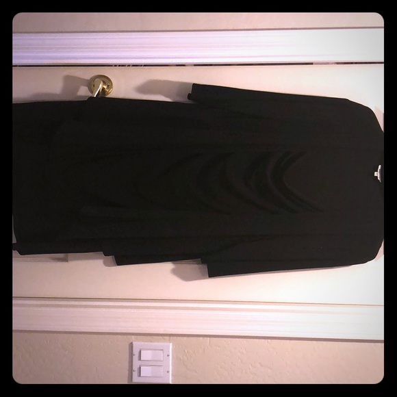 Black dress with attached jacket. Knit type material. Front is a drop neck that cascades. Very professional or dress down for a night out. Worn 2 times.