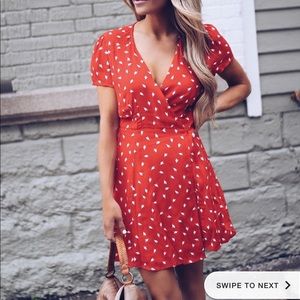 Vici collection Falling Flowers Blood Orange and White Dress