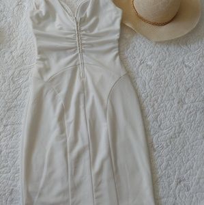 Low cut white stretch tank. Very low cut. Hits right below the knee