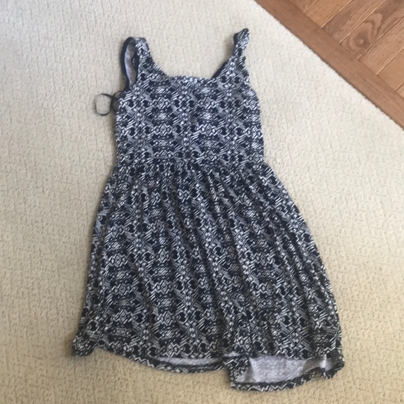 It’s a black and white racerback dress. It is great to wear as a coverup , with leggings or by itself.