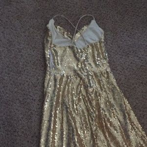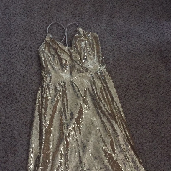 Gold sequin dress, long, crossed back Flows, used for a maid of honor dress size 8