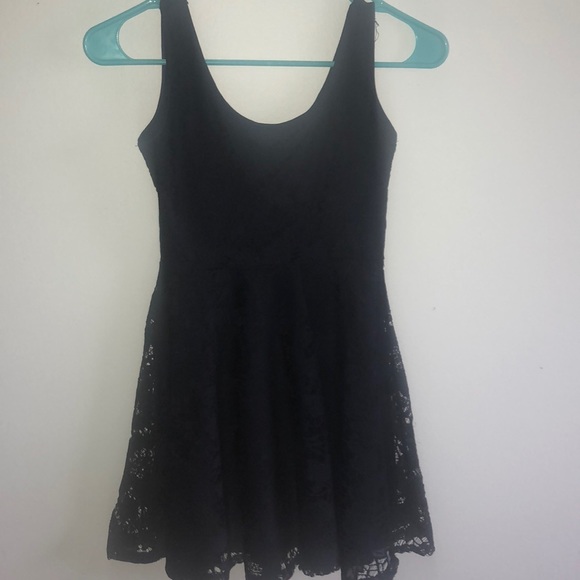 a flattering navy blue lace dress that’s super cute for any event!! Only worn 3 times!! can pair with flats heels or even converse ;))) ( it looks shorter in person)