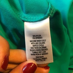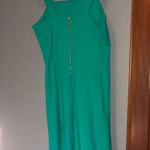 Vibrant green summer dress. Stretchy, breathable material. Gold zipper in back.