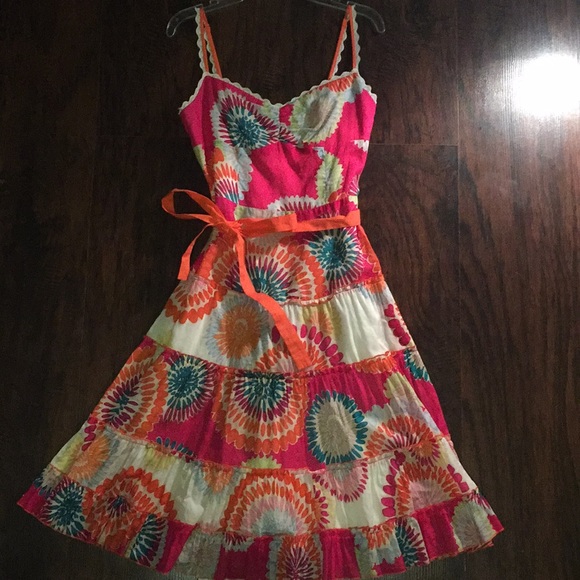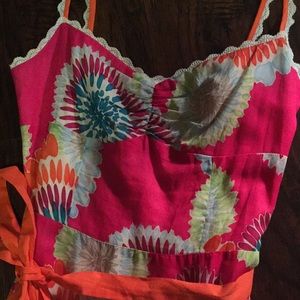 Beautiful BCBG floral dress, perfect for a simple homecoming dress or wedding guest dress! Amazing detailing with detachable ribbon belt!