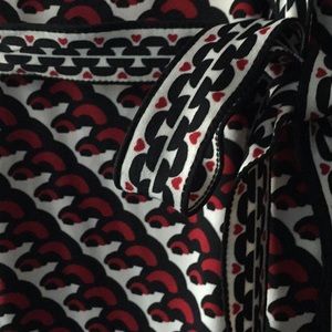 Wrap dress with 3/4 sleeves. Brand new with tags. Red, black and white. The edging and belt has little red hearts! Great for Valentines day, or a special date night!