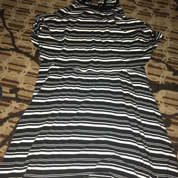Black in white stripe halter skater dress from torrid fits larger then size