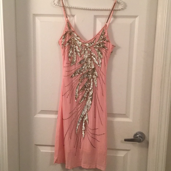 This is a baby pink in silver sequin front and back party dress.