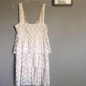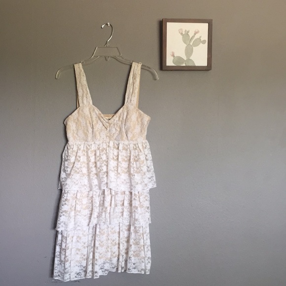 This was one of my favorite dresses! It is so flattering and sexy and easy to wear! It has a nude lining with a white lace exterior. It’s so awesome!
