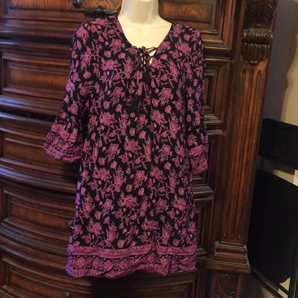 New no tag Beautiful dress with slip tie front nice design ruffle sleeves fresh feeling for summer size Medium no rips or stains.