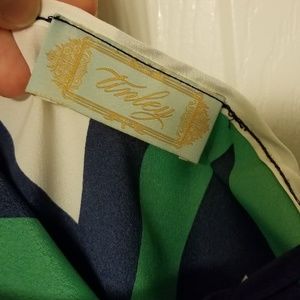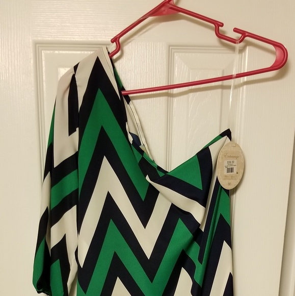 Green, white, navy Chevron one shoulder dress