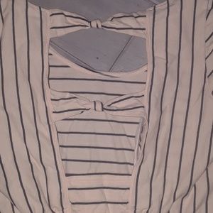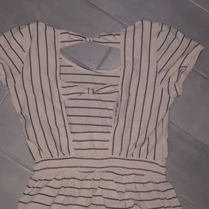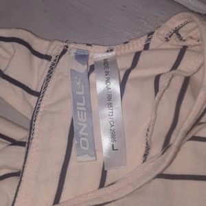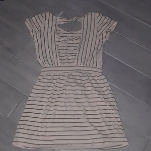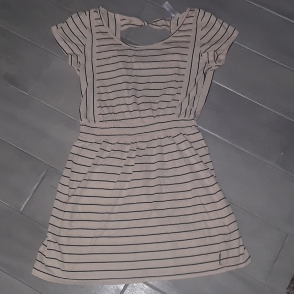 Tan and black striped O'Neill dress with open back.