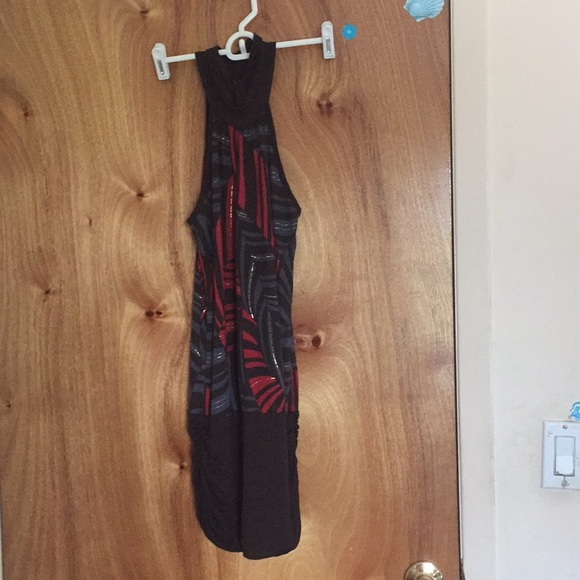 Cute brown, red and blue dress with gold streaks