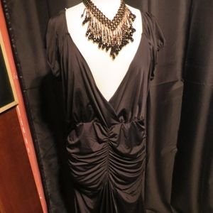 Hi-Low jersey knit dress with front & side runching, deep v-neck and elastic waist. Worn one time