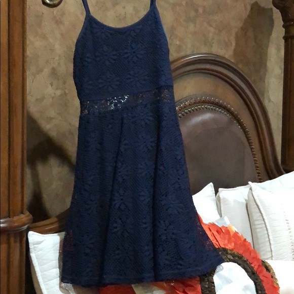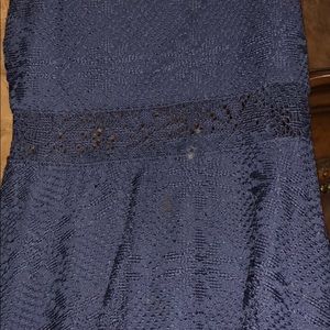 A short navy blue dress with a flower knit