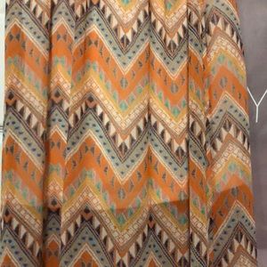 Fun pattern good for fall or summer !!! Strapless and breathable !!! It is 100% polyester ! The dress has a short lining underneath the body but the body goes all the way to to floor !!!